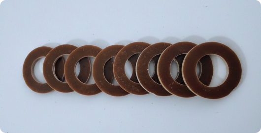 The phenolic carrier isolates the flanges, providing strength and dielectric properties. Thin Nitrile layers glued to the faces provide sealing and limited oil/chemical resistance under bolt compression.